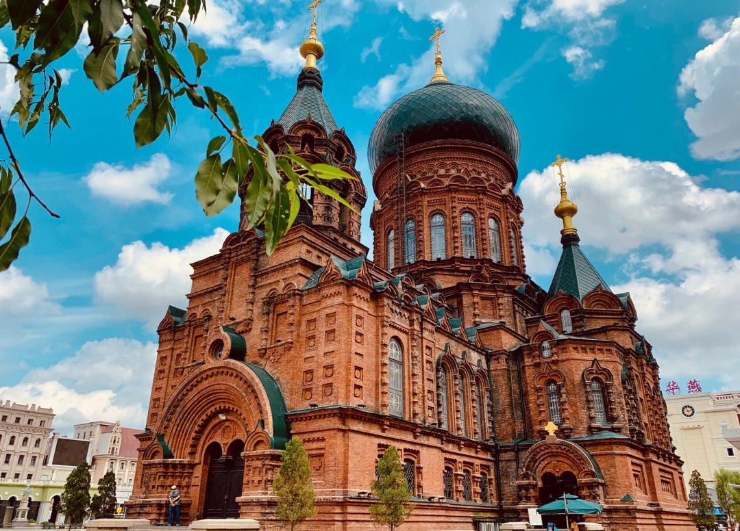 3.圣·索菲亚教堂,坐落于哈尔滨市道里区索菲亚广场,是一座始建于1907年拜占庭风格的东正教教堂,为哈尔滨的标志性建筑。最初为沙俄东西伯利亚第四步兵师修建中东铁路时修建的一座随军教堂。俄国茶商伊·费·赤斯嘉科夫出资,以随军教堂为基础,重新修建了一座全木结构教堂。1911年,木墙外部砌了一层砖墙,形成了砖木结构式教堂。