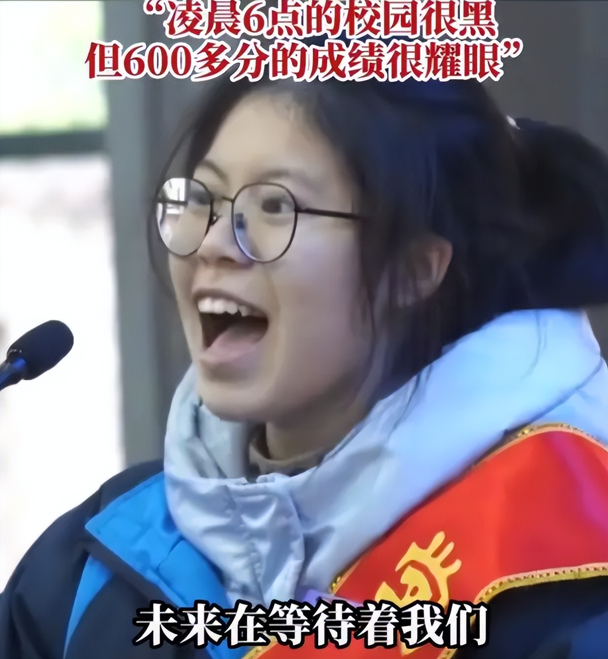 还依稀记得她演讲中提到过“凌晨六点的校园真的很黑,但600多分的成绩也真的很耀眼”,想必她对自己的期望也是考上600多分的好成绩吧。