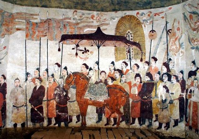 北齐的皇帝各个喜欢享受,热爱奢华的装饰,北齐壁画色彩华丽,气势恢弘,描绘的场景波澜壮阔,是北朝晚期绘画艺术的巅峰。