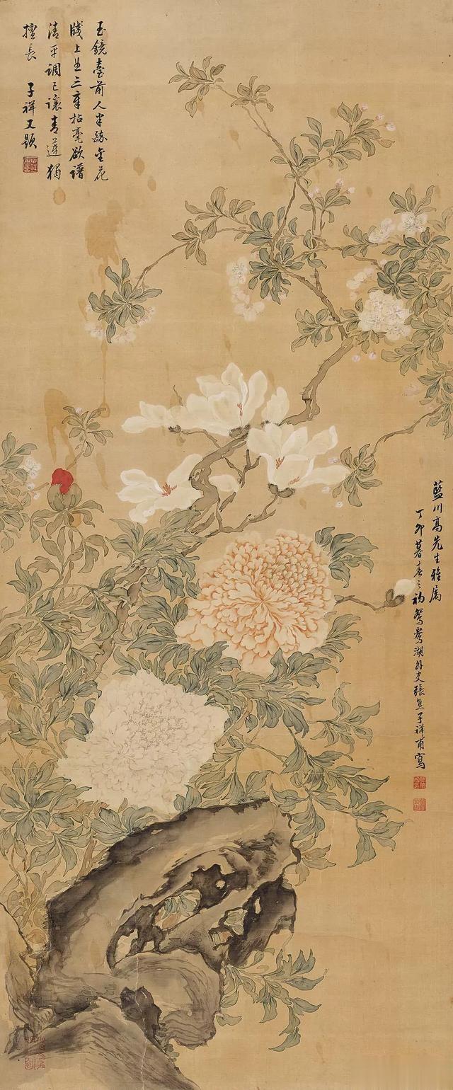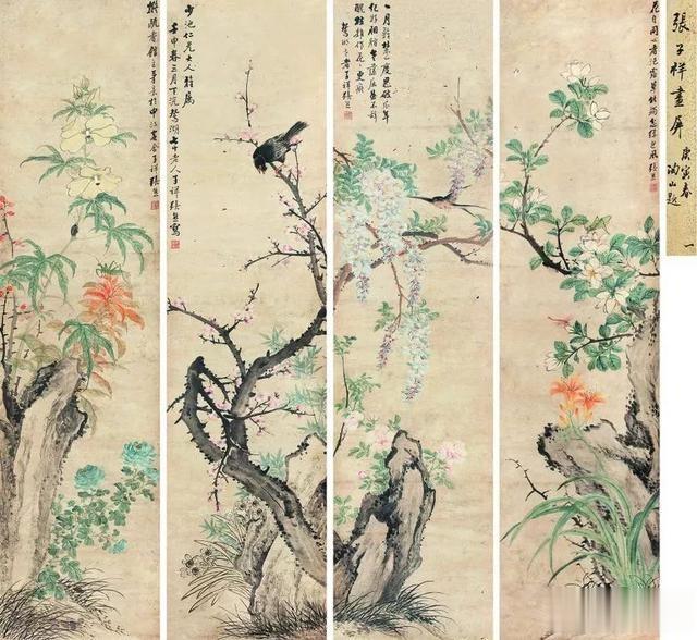 张熊,这位晚清画坛的传奇人物,以一支妙笔绘尽世间芳华。他笔下的牡丹,不是寻常花卉,而是倾注了生命力的艺术瑰宝。屏山巨幛之间,他的牡丹恣意绽放,仿佛能听见花瓣舒展的轻响,嗅到那馥郁的芬芳。