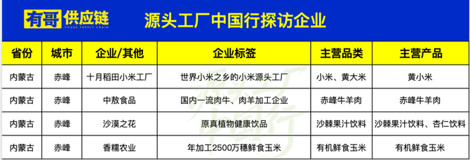 赤峰的供应链,是“草原基因+山林珍品”的生动演绎。中敖食品的赤峰牛羊肉,将草原鲜美锁进冷链,肉质鲜嫩、风味独特,成为烧烤、火锅门店的“肉质担当”,让“草原肉香” 突破地域限制;十月稻田小米工厂的黄小米,凭借香糯口感与健康属性,从传统杂粮升级为 “养生主食爆款”,撑起轻食粥品、杂粮饭等爆款的底层逻辑。