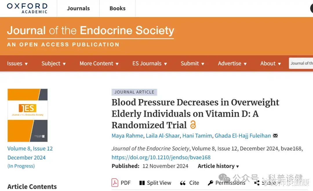 而补充维生素D,是否会对高血压患者的血压控制有益处呢?一项近日发表在发表在《内分泌学会杂志》上的研究中,研究人员探讨了两剂维生素 D3 或胆钙化醇补充剂与钙一起服用是否对老年人、超重者的血压有影响。