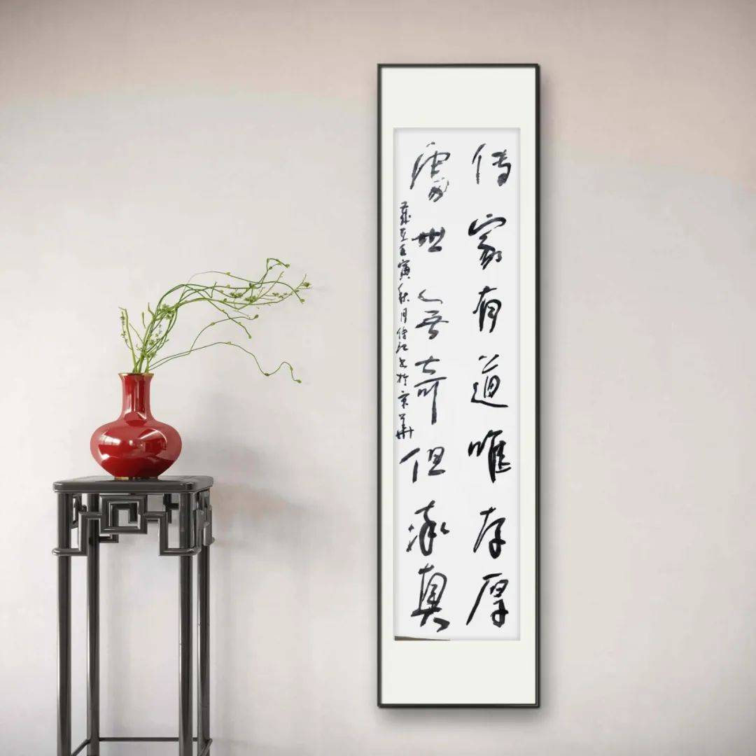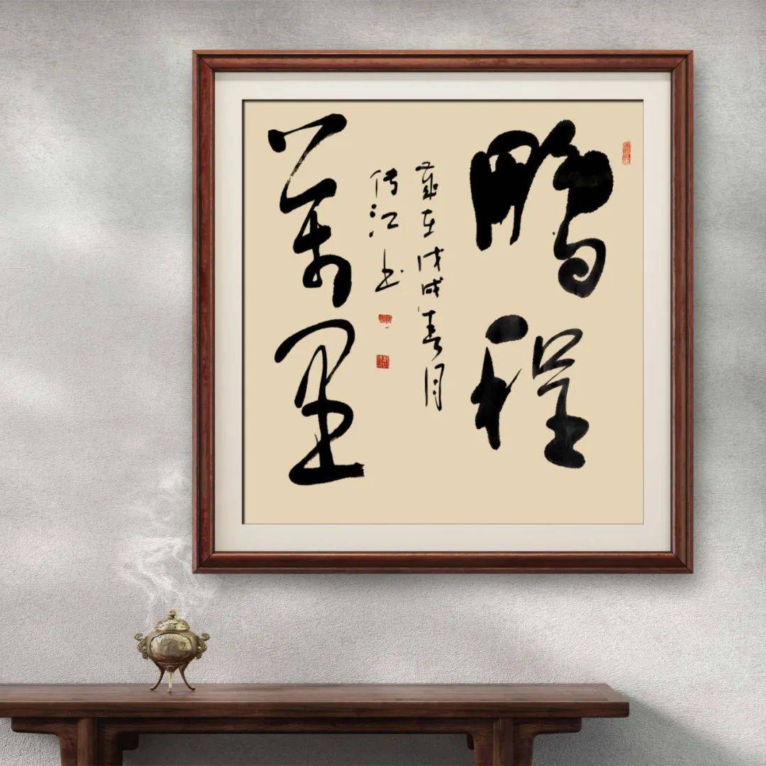 戴传江先生的草书以抽象的线条营造出独特的意境,或古朴苍劲,或飘逸洒脱,或雄浑豪放。如怀素的草书给人以空灵洒脱之感,而张旭的草书则展现出雄浑豪迈的意境。先生笔下的线条,如奔蛇走虺,连绵回绕且张力十足。笔画粗细对比强烈,时而轻若游丝,时而重如崩云,在节奏变幻中演绎独特韵律。