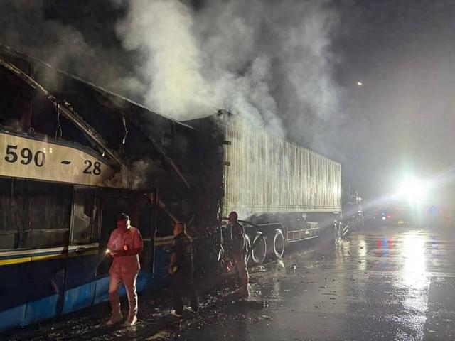 当地时间4月21日凌晨,泰国巴真府发生一起交通事故,一辆从廊开驶往罗勇的长途客运巴士撞上多辆大货车后引发大火,已造成7人死亡、30余人受伤。目前事故原因仍在进一步调查中。(总台记者 宋焕钰)