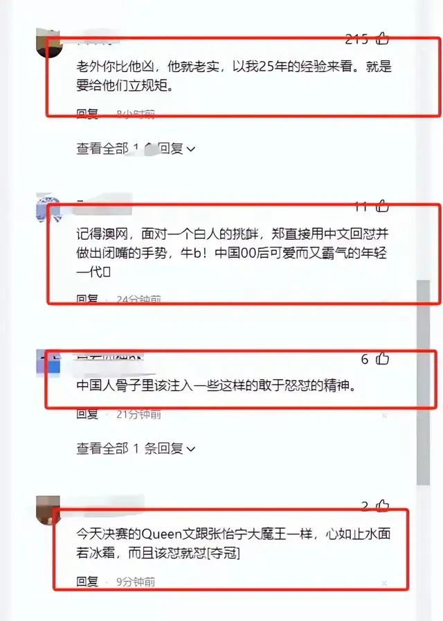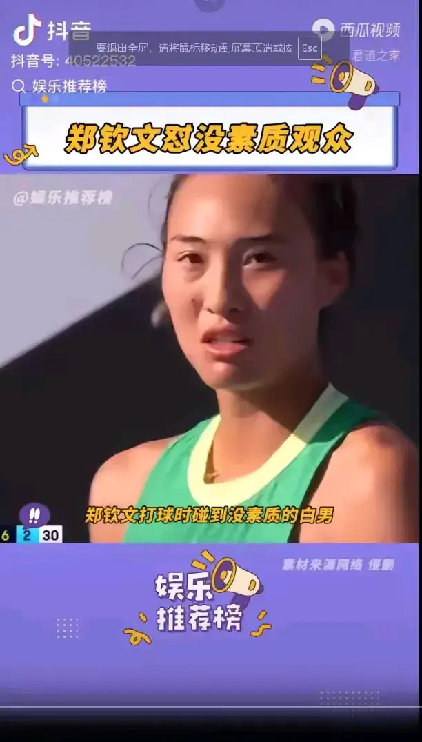 央视的转播中,甚至特别放出了慢镜头,捕捉到了郑钦文回怼的瞬间。镜头中,她的口型清晰可见,传递出了她坚定和有力的回应,那是两个字,字正腔圆,铿锵有力。