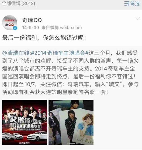 现在呢,再去看看奇瑞QQ的官方账号,仿佛时间在那里静止了一样。账号还停留在2014年,最后发布的内容是“最后一份福利,怎能错过?”就这么一句话,之后就像人间蒸发了一样,一停更就是10多年啊!这10多年里,这个账号就像被遗忘在角落里的旧物,无人问津。
