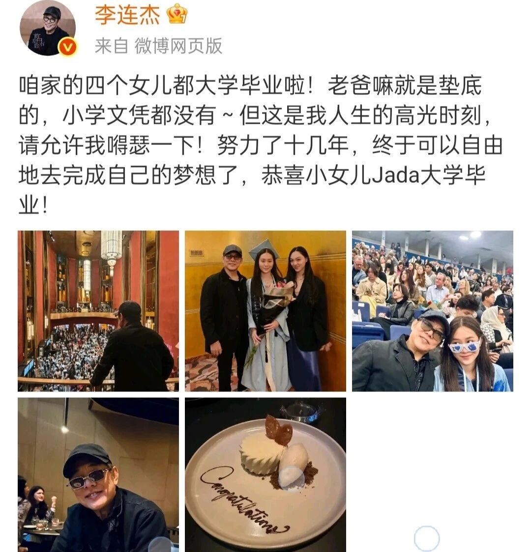 当然,李连杰的四个女儿,也优秀得让人羡慕:大女儿哈佛毕业,二女儿成了眼科医生,三女儿 Jane 和小女儿 Jada 也都考上了常春藤名校。