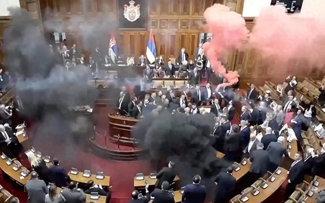 塞尔维亚议会遇袭那天,在塞尔维亚议会里,反对派的议员们居然在会议上扔烟雾弹来抗议。塞尔维亚总统武契奇对此非常生气,他说这些人的行为简直就是流氓做派!