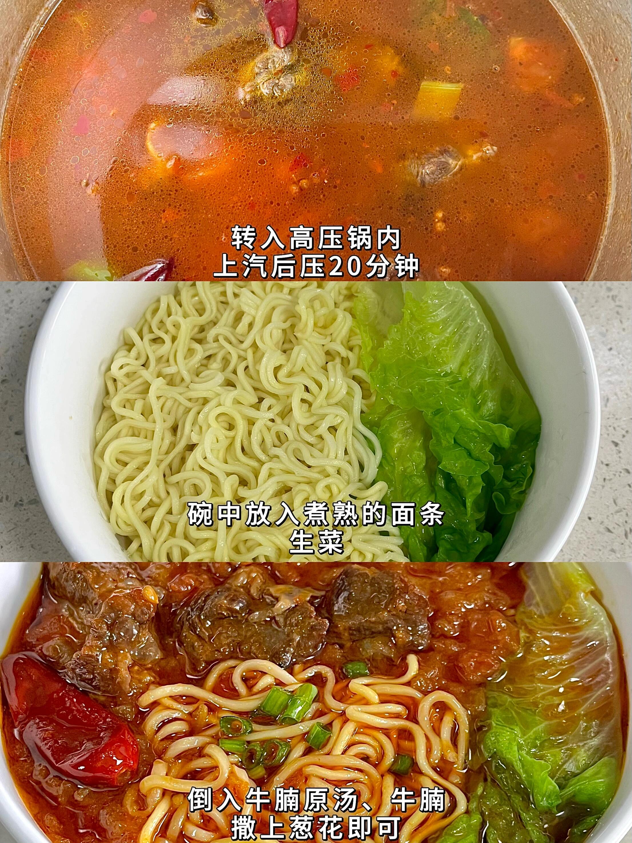 食材准备:- 牛腩- 新鲜番茄- 番茄酱- 面饼- 生菜- 姜葱蒜- 八角、香叶、桂皮、花椒- 干辣椒- 豆瓣酱接下来,就是让你满嘴生香的做法啦!1. 先来处理牛腩牛腩可是这道菜的明星,首先要让它变得更加美味。把牛腩切成块,放入冷水锅中,加入几片姜,再加几勺料酒,焯水的过程中,那股肉香扑鼻而来,别急着吃,等会更精彩!2. 炒出香气锅里热油,牛腩进去翻炒,牛肉表面微微焦黄,已经散发出诱人的香气。这时候,加入姜葱蒜和豆瓣酱,炒出红油,看着这个颜色,你就知道好戏即将上场啦!再把切好的番茄和番茄酱放进来,翻炒均匀,让每一块牛腩都浸透上那酸甜的番茄汁。3. 炖煮的魔法现在,是时候让牛腩在锅里“洗澡”了!倒入足够的开水,水量要没过牛腩哦。接下来,加入八角、香叶、桂皮、花椒、干辣椒,一下子的香气就充满了整个厨房,幸福感爆棚!别忘了,撒点盐、生抽、老抽和白糖调味,完美的味道呼之欲出。4. 高压锅来助攻把锅里的美味转入高压锅,上汽后压20分钟,等待的过程简直是煎熬,但也是充满期待的时刻。在这短暂的时间里,牛腩会吸收所有的调料精华,变得鲜嫩可口,汤汁也会变得浓厚无比。5. 盛装出场时间到了,打开高压锅,忍不住想尝一口的冲动!准备好煮熟的面条放在碗里,再加入一些新鲜脆嫩的生菜,最后舀入牛腩和那诱人的原汤,撒上葱花,一碗色香味俱全的番茄牛肉面就新鲜出炉啦!每每品尝这碗番茄牛肉面,都是温暖与满足的结合。它不仅仅是一道美食,更是我对新一年的美好祝愿。愿大家在新的一年里,都能享受到生活的滋味,红红火火,幸福每一天!快来试试吧,你绝对不想错过这份年味儿!