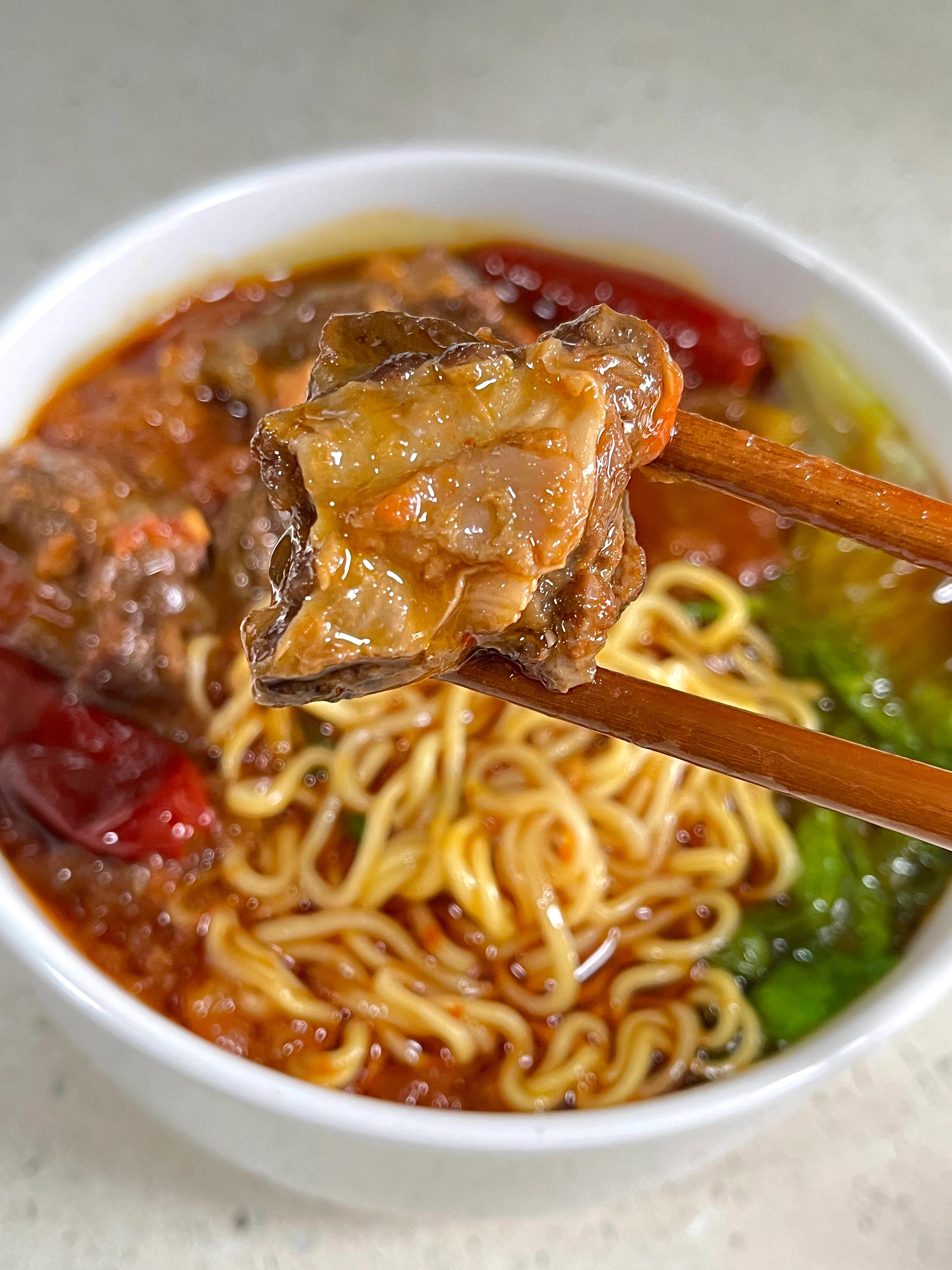 让我来给大家带来一碗超级让人心动的美食——番茄牛肉面!想象一下,牛肉软烂得恰到好处,面条劲道又有嚼劲,汤底酸爽开胃,简直是一整年的味蕾满足啊!希望新的一年也能像这碗面一样,红红火火,大家新年快乐,欢庆每一个美好的瞬间!