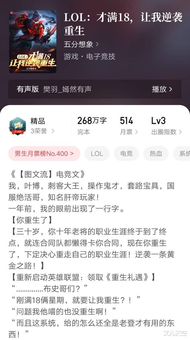 8、《LOL:才满18,让我逆袭重生》268万字完本