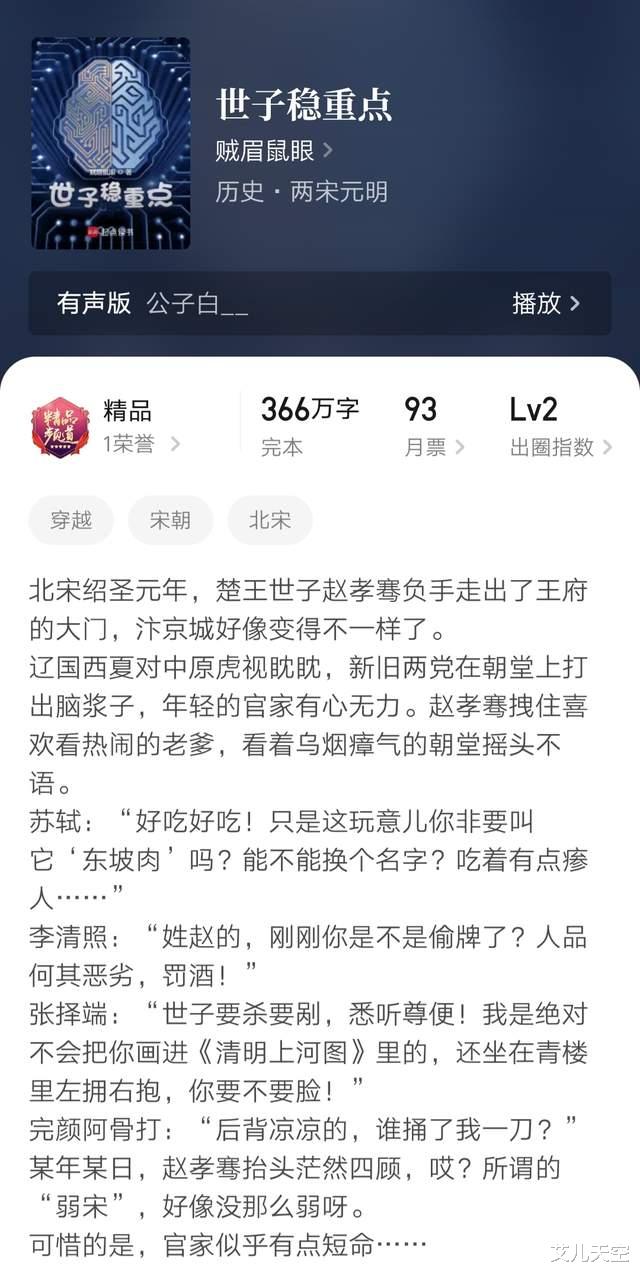 大神贼眉鼠眼作品,主角穿越宋哲宗时期楚王世子的故事,风格偏轻松向。