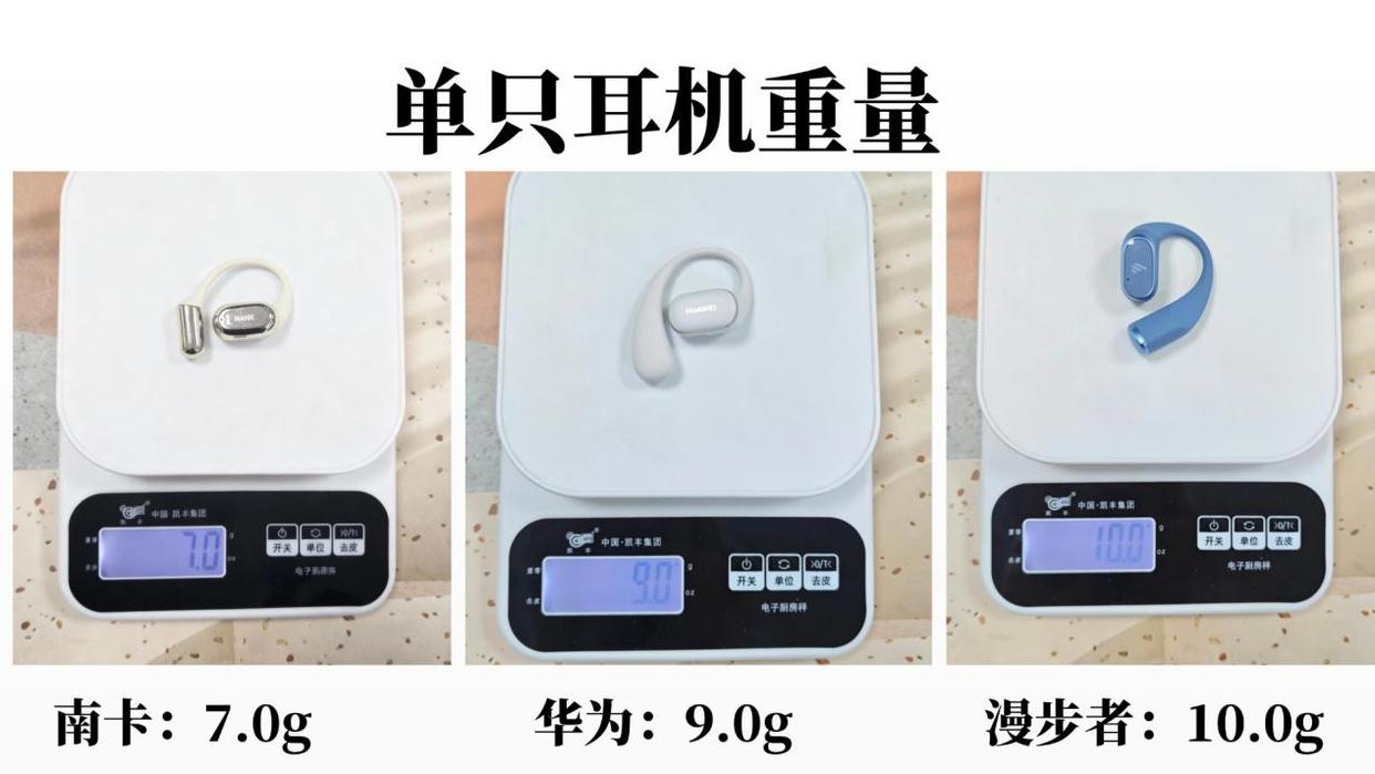 这次实测我们选择从单耳重量、材质触感、场景稳定性三个方面进行,实测对比三款耳机的佩戴舒适度情况。