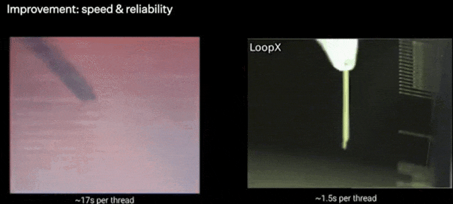 一个明显的对比是,手术机器人在插入插单根电极线速度提升了十几倍,以下是现有手术机器人和新一代 Rev10 的对比: