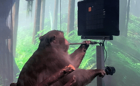 Neuralink 自 2016 年成立以来技术进展不断,那时候 AI 技术的发展尚未成熟,ChatGPT 和 Transformer 架构还没有出现,自动驾驶刚刚发展起步。2021 年,该公司展示了一只猴子通过大脑控制玩乒乓球游戏的演示(如下图)。