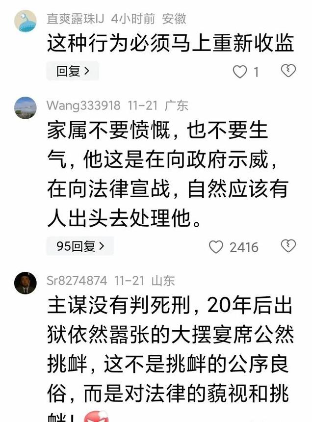 网友们对此事件反应激烈,普遍认为这是对整个社会法治精神的挑战。有人质疑,为什么社会能容忍这样的事情,难道法律真的无能为力?这种愤怒似潮水般涌来,不仅是对宴席的谴责,更是对整个社会现状的不满。