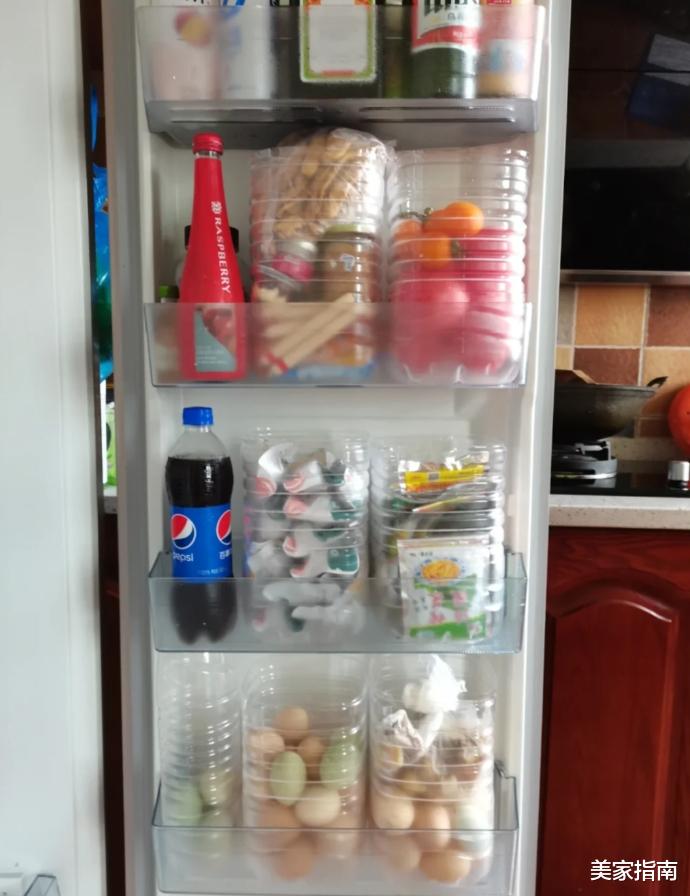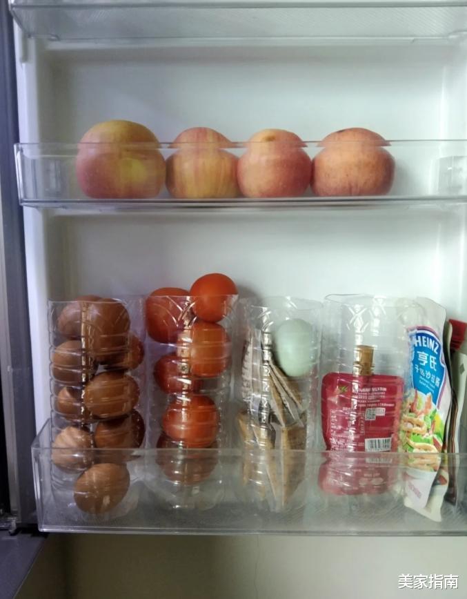 7、用于冰箱收纳其实冰箱用久了就会发现,有时候分区设计挺不合理,所以不少人会买一些冰箱专用的收纳盒、置物架,其实家里有矿泉水瓶子,也可以充当收纳盒使用。