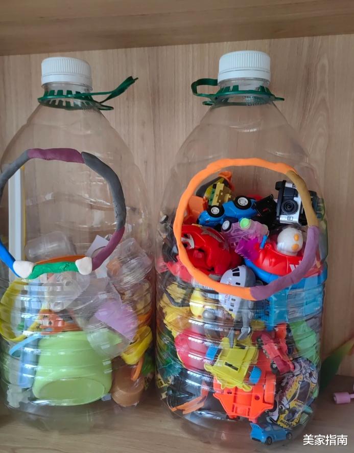 美家点评:看得出来,这位宝妈不仅创意十足,而且也非常走心,为了防止矿泉水桶的“剪口”处划伤手指,宝妈特意用宝贝的“粘土”做了“封边处理”。这样的创意收纳,肯定能够激发孩子收纳的乐趣~