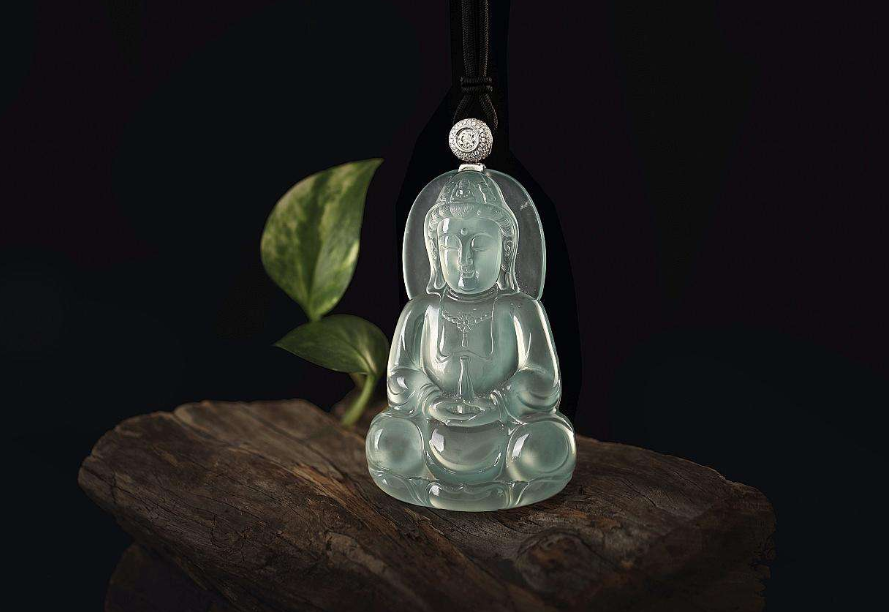 在品质相近的情况下,坐姿翡翠观音的价值高于站姿翡翠观音,这是因为坐姿观音的整体造型比较圆,耗材比较多,耗材多的翡翠价值肯定高于省材的翡翠。