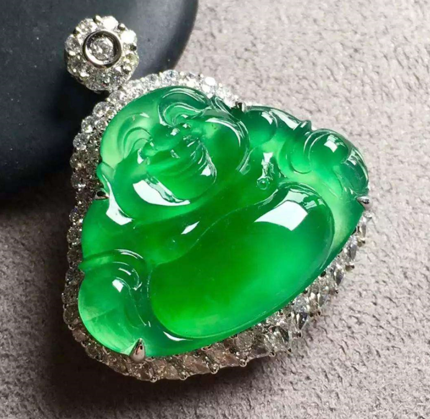 佛公是大家很喜欢的翡翠题材之一,凸肚的翡翠佛公价值高于平肚的佛公,这很好理解,凸肚佛公用料更多,而且肚子大寓意福气满满,价值自然会比较高。