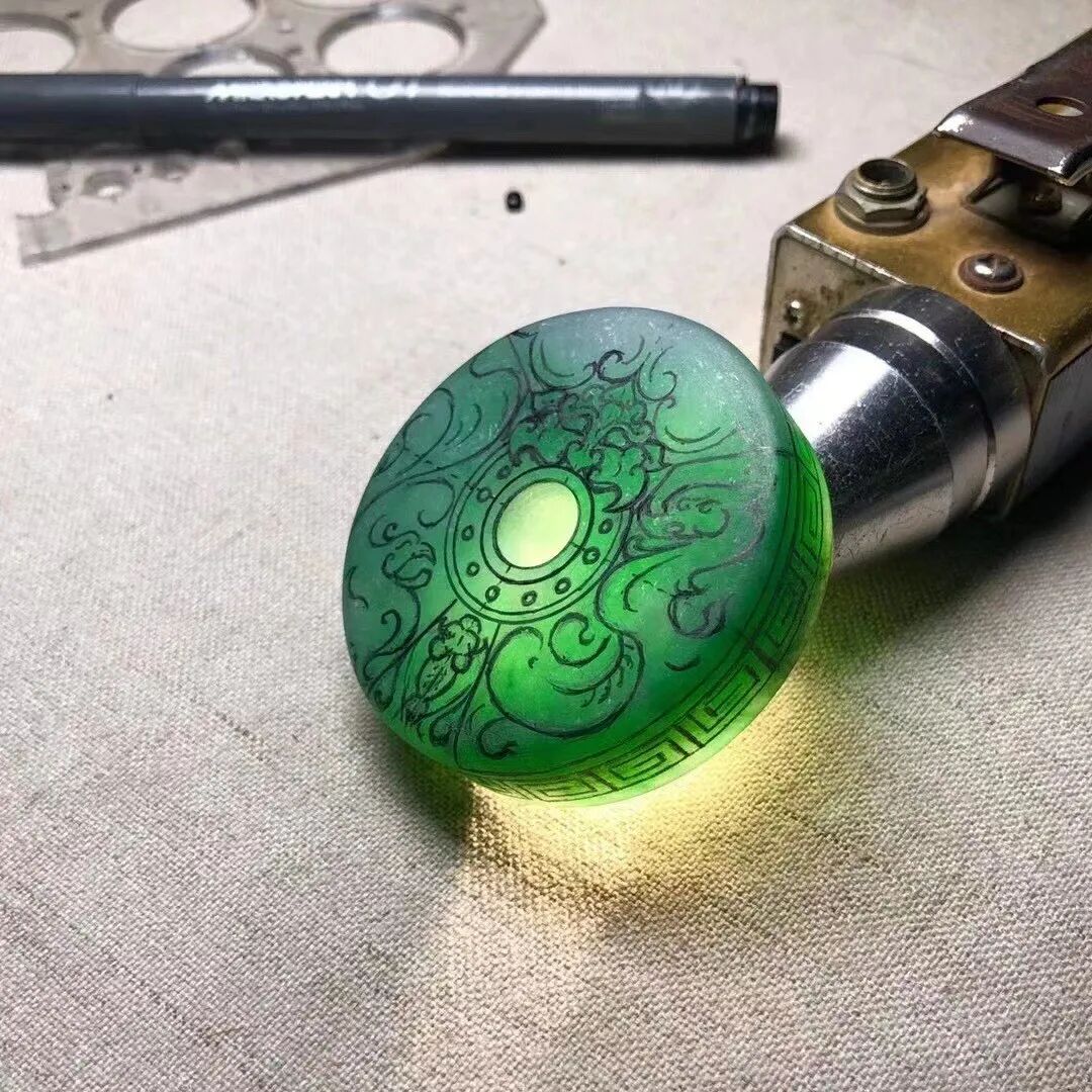 其实,大家看过翡翠的加工图的话都知道,加工中的翡翠颜色都比较淡的,这是因为未完成加工的翡翠表面还不是很光滑,而且加工过程中可能会沾上灰尘,翡翠的表面就好像灰蒙蒙的。