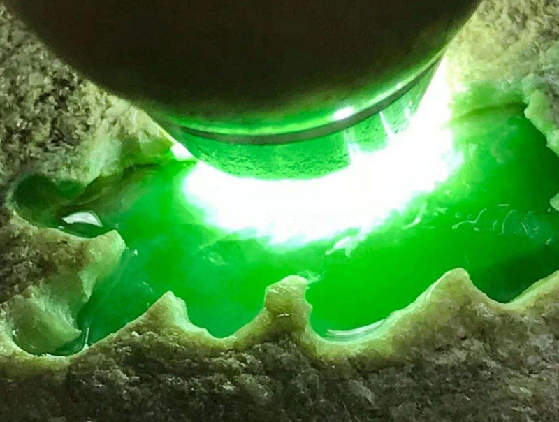 有经验的行家也会根据翡翠原石的皮壳状态判断其内部的颜色,但是难度也是很大的,判断不一定很准确,在原石被切开前,任何人都无法确定它内部的情况。