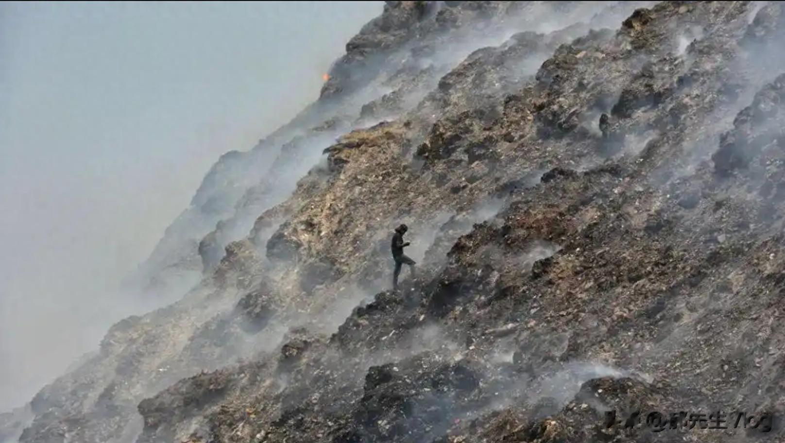 德里西北部的Bhalswa垃圾填埋场,垃圾堆积高达60多米