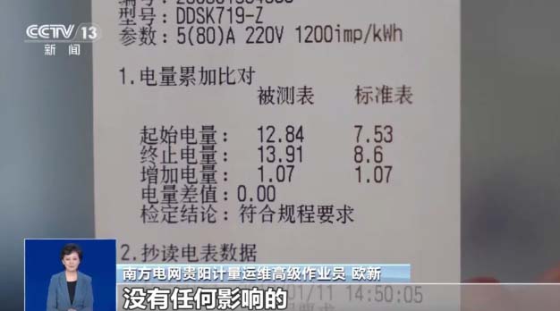 南方电网贵阳计量运维高级作业员欧新通过对比实验证明:在同一时间内,放置强磁铁的电表与正常电表的电量读数完全一致,强磁铁对电子式智能电表的计量没有任何影响。