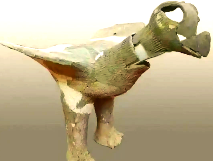而石峁遗址则有大陶鹰,现在已经发现了二十多个陶鹰: