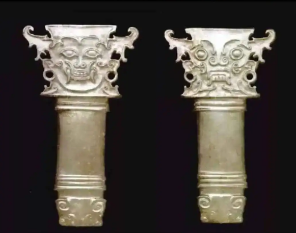 当然还有更惊人的在皇城台东门址的一处高等级祭祀坑发现的“虎鹰玉钺”,这是虎图腾和鹰图腾的结合。