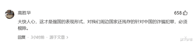 大快人心,这才是强国的表现形式,对我们周边国家还残存的针对中国的诈骗犯罪,必须根除。