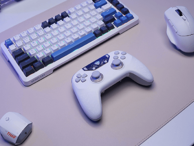 第一眼就被这款设计戳中——磨砂外壳防滑耐脏,渐变灯效在暗光下像呼吸般律动,摆桌上直接提升游戏氛围。摇杆采用ALPS电竞级组件,摇杆帽采用防滑纹设计,激烈操作时手指不打滑,但长时间使用后纹路缝隙可能积灰,需定期清理保持手感。机械按键触发干脆利落,连招搓招基本不延迟,尤其适合格斗游戏;霍尔扳机键支持0.1mm级线性反馈,赛车游戏里轻踩油门就能感受到速度的渐进提升。不过,手柄偏重的设计(约220g)可能让女生长时间握持稍显吃力,但扎实的用料也让它在激烈操作中稳如磐石,避免“飘手感”。