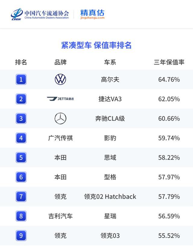根据中国汽车流通协会发布的报告,自主品牌的保值率有了显著提升。广汽传祺以 57.9% 的三年保值率排名第一,超过了众多合资品牌。五菱和领克保值率均为 52.4%,哈弗 52%、长安 51.9%、吉利 51.7% 等也都表现不俗。