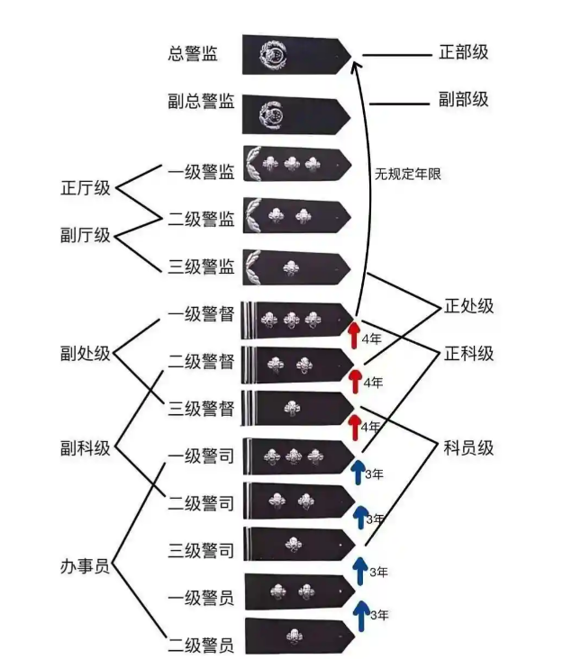 根据现行规定,从基层民警到三级警监,正常情况下需要: