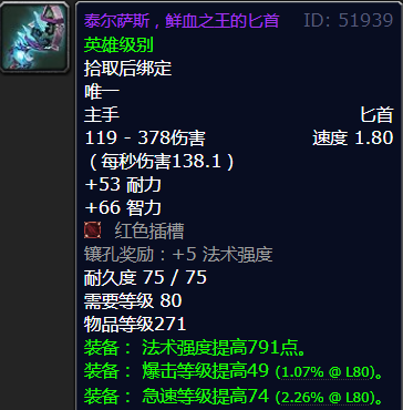 优势:完爆264血涌匕首,急速暴击双优,火法/术士/鸟德拿到即版本毕业