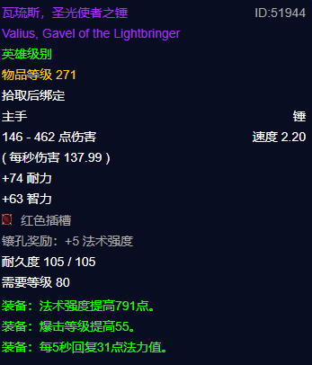 属性:271装等,791法强+74急速+49暴击,红色插槽