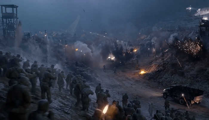 这种叙事角度的转变,为观众提供了一种过去中国战争题材电影所没有的沉浸式、血淋淋的惨烈经历。即便是同样的抗美援朝主题,比如金刚川,也是从一个客观的视角来观察,所以我们看到的是一个很远很远的故事,而不是体验到了这个故事。