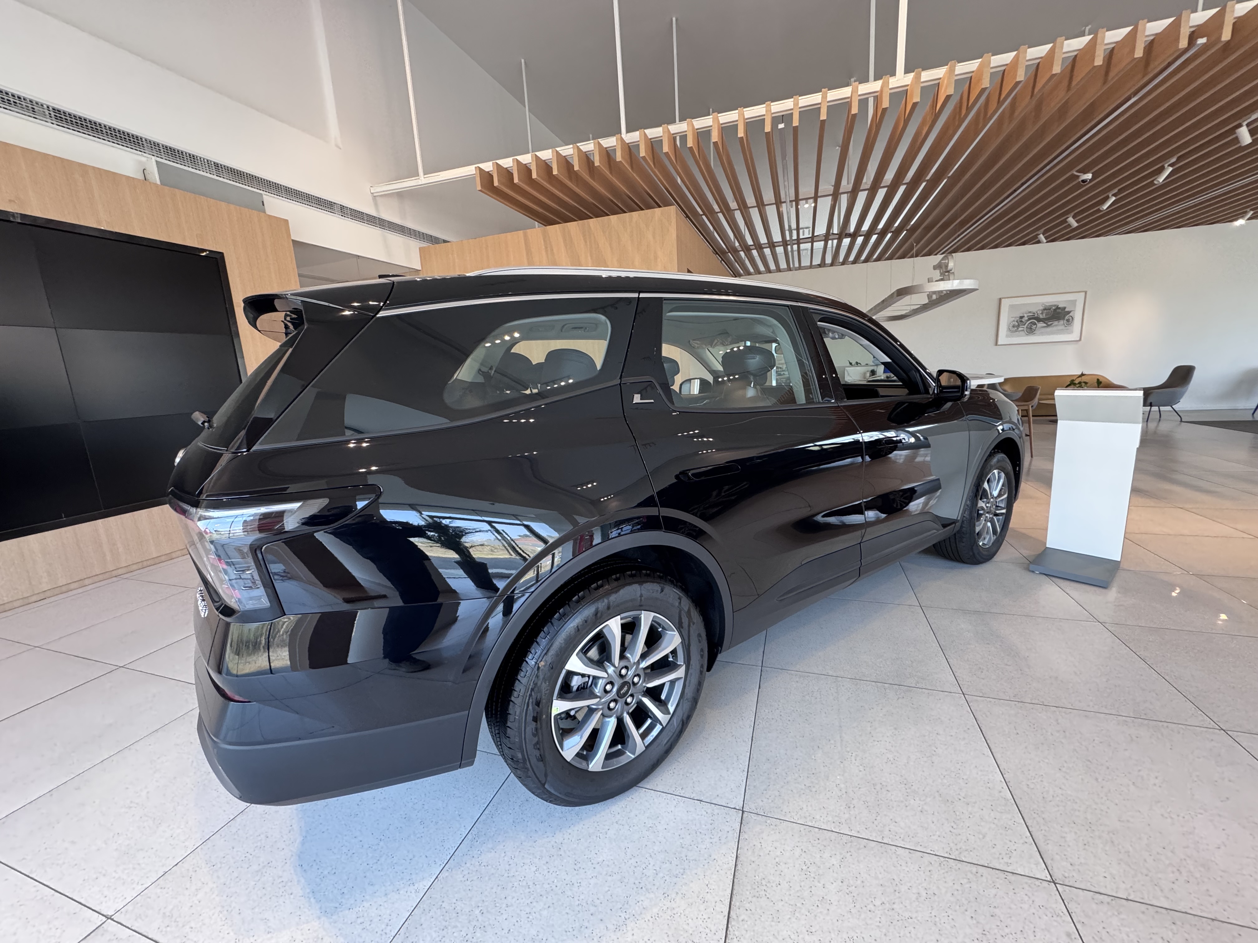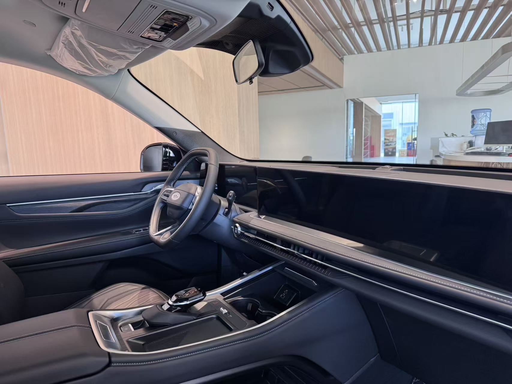 一进展厅,那台黑色的锐界L就放在挺显眼的位置。看着挺沉稳大气,也挺时尚,感觉耐脏也应该耐看。媳妇第一眼就说这个样子比图片上看着更壮实,接缝啊漆面啊这些,做工看起来挺扎实的,是那种传统美系车给人的厚实感,门板我特意用手按了按,关门的声儿也挺沉,心里下意识会觉得安全性可能不错,用料确实实在。