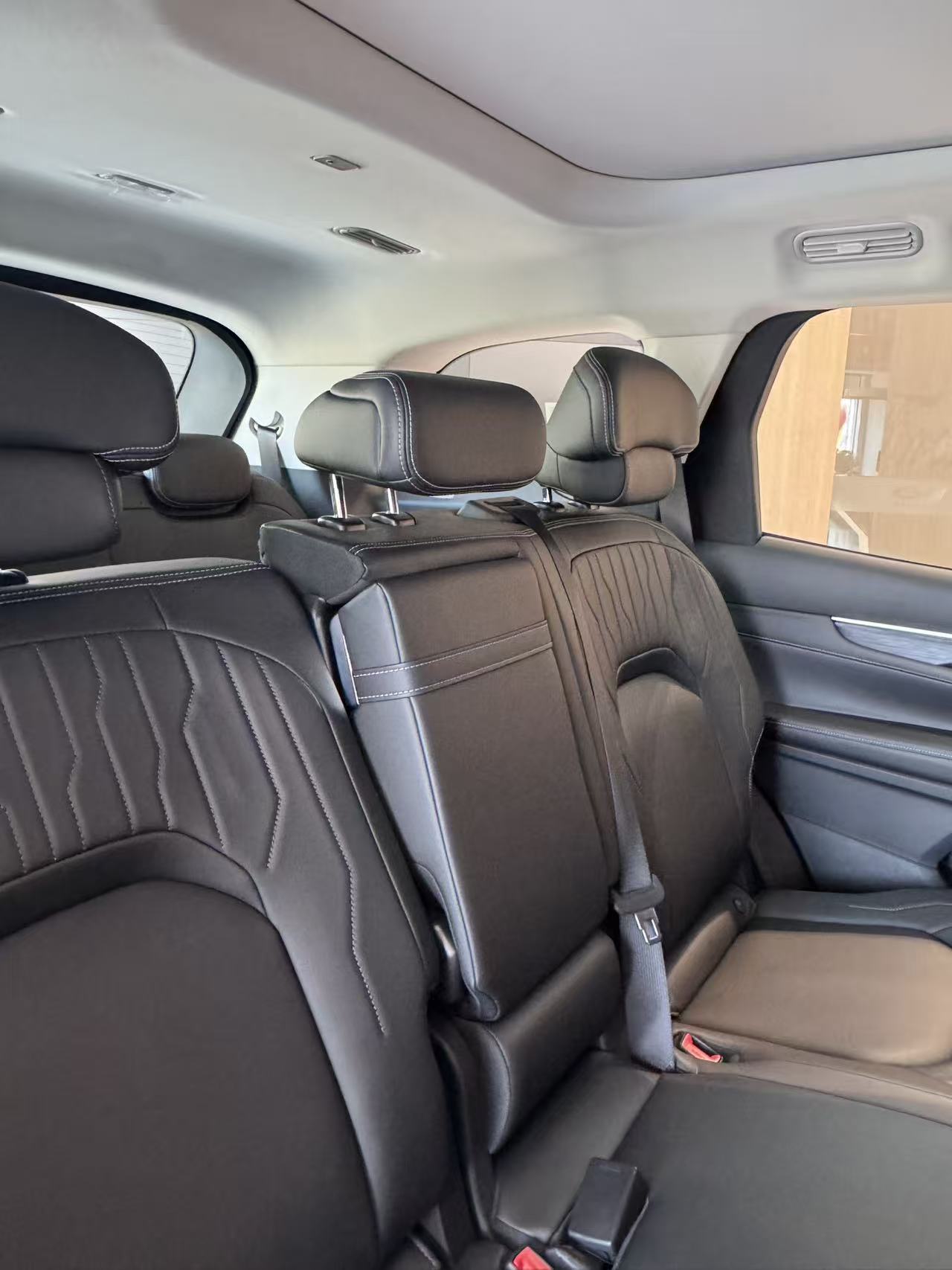 坐进车里,最关心的肯定是空间。锐界L提供了232和223两种座椅布局可选,这个得根据自家情况来。我们家目前五口人为主,偶尔可能带上父母,所以两种布局都仔细琢磨了一下。如果选232,平常当大五座用,后排放倒后那后备箱是真能装,感觉搬个家运点大件都没问题。但销售主要给我们演示了223的布局,二排是两个独立的座椅,带扶手,配置确实高,有加热,这回冬天可算不用遭罪了。最关键的是,中间那个通道,销售特意让我媳妇穿着她那件挺厚的羽绒服走过去试试,还真是轻松就过去了。这点对我家挺实用,有时候孩子坐第三排,不用每次都费力去翻折二排座椅,省事儿不少。三排我也去坐了一下,不像有些车的第三排纯粹是摆设,短途应急坐个成年人还能接受,头部空间还行。
