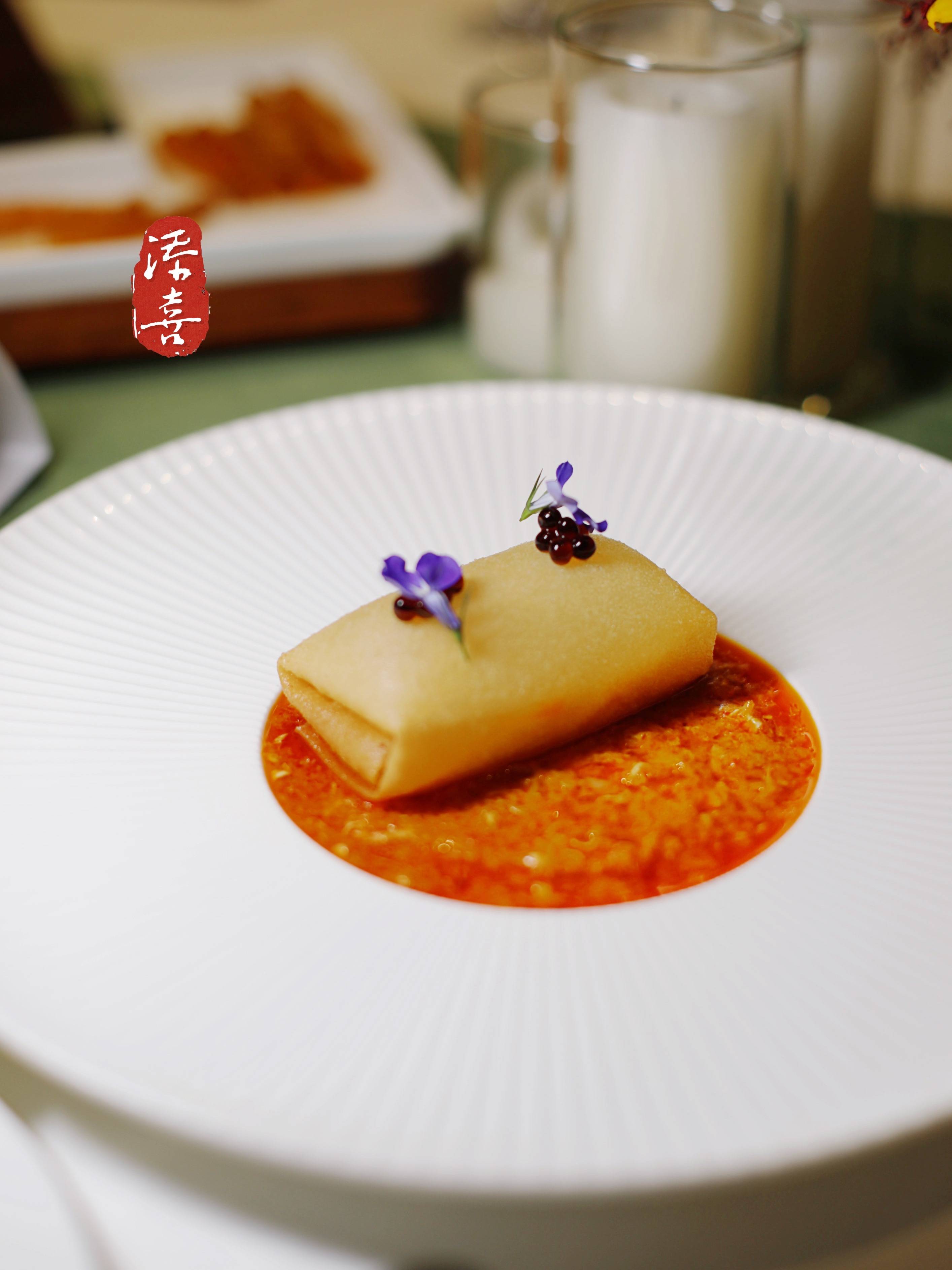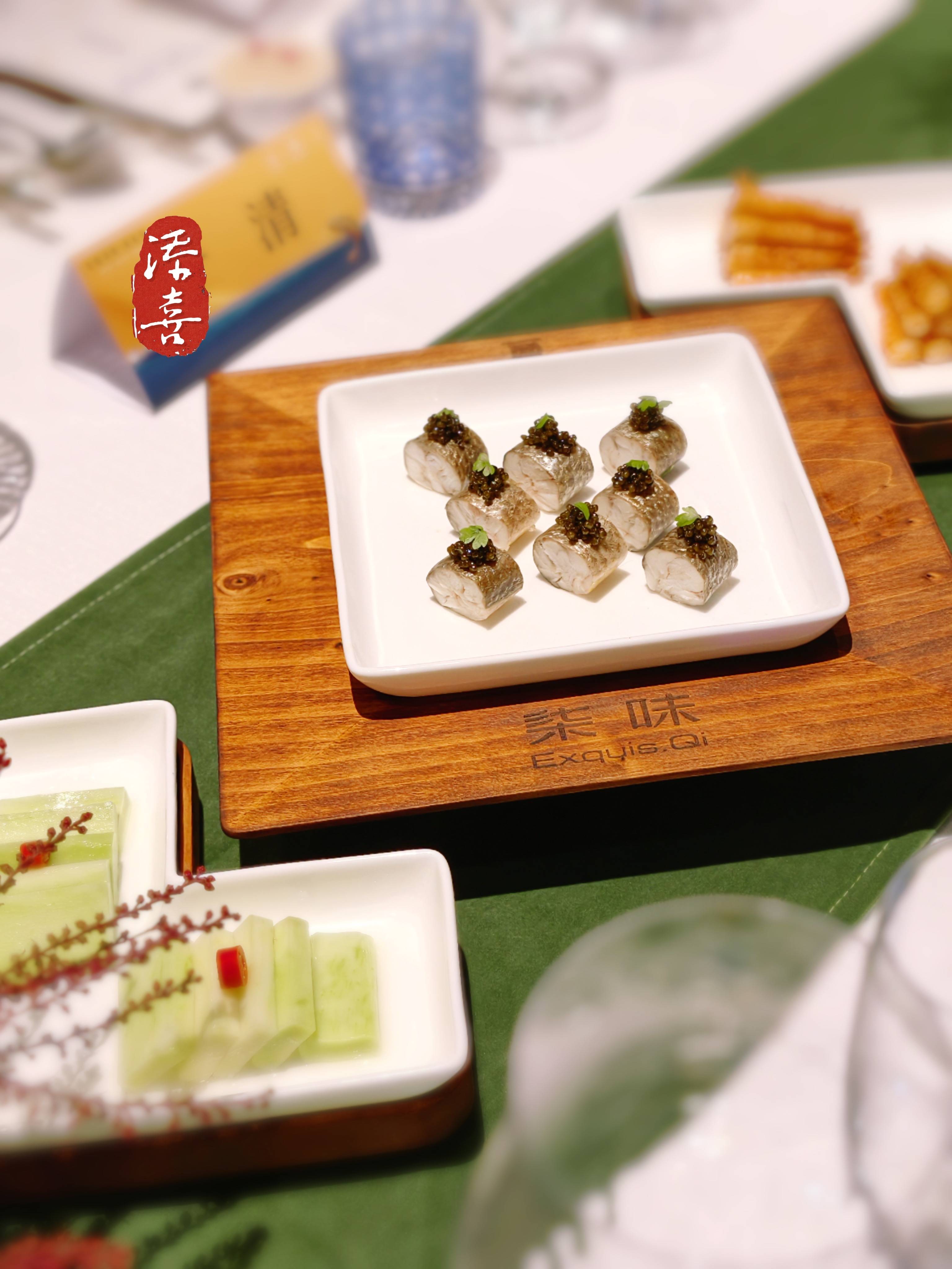 品鉴交流菜单共有9道菜品,运用不同烹饪手法,多角度呈现黄鱼的鲜美。在品鉴现场,董顺翔大师也对当晚的菜单进行了深度解读。他指出,菜单设计既注重传承,也追求在地文化的现代表达。例如,由宋韵轩主厨李建明制作的“酒蒸石首”,菜名沿袭了宋代林洪的食谱《山家清供》中的记载,而在手法与风味上做了细微调整;由蔓罗主厨王世光制作的鱼笋也传承了宋代“笋鳜”的做法,我们以黄鱼代替鳜鱼镶嵌在春笋中;由柒味主厨刘婷操刀的 “西湖醋黄鱼”也并非简单创新,而是团队围绕杭州经典的醋鱼烹调技法进行当代演绎的尝试,如何在保持风味魂韵的同时实现口感与酱汁的升级,对厨师团队而言是一种挑战,也是一种突破。此外,董大师特别提到宴席最后的素菜——用三种萝卜烹制,融入“冬吃萝卜夏吃姜”的民间饮食智慧,呼应“萝卜赛人参”的养生理念,也为整席菜品增添了季节韵味与健康内涵。