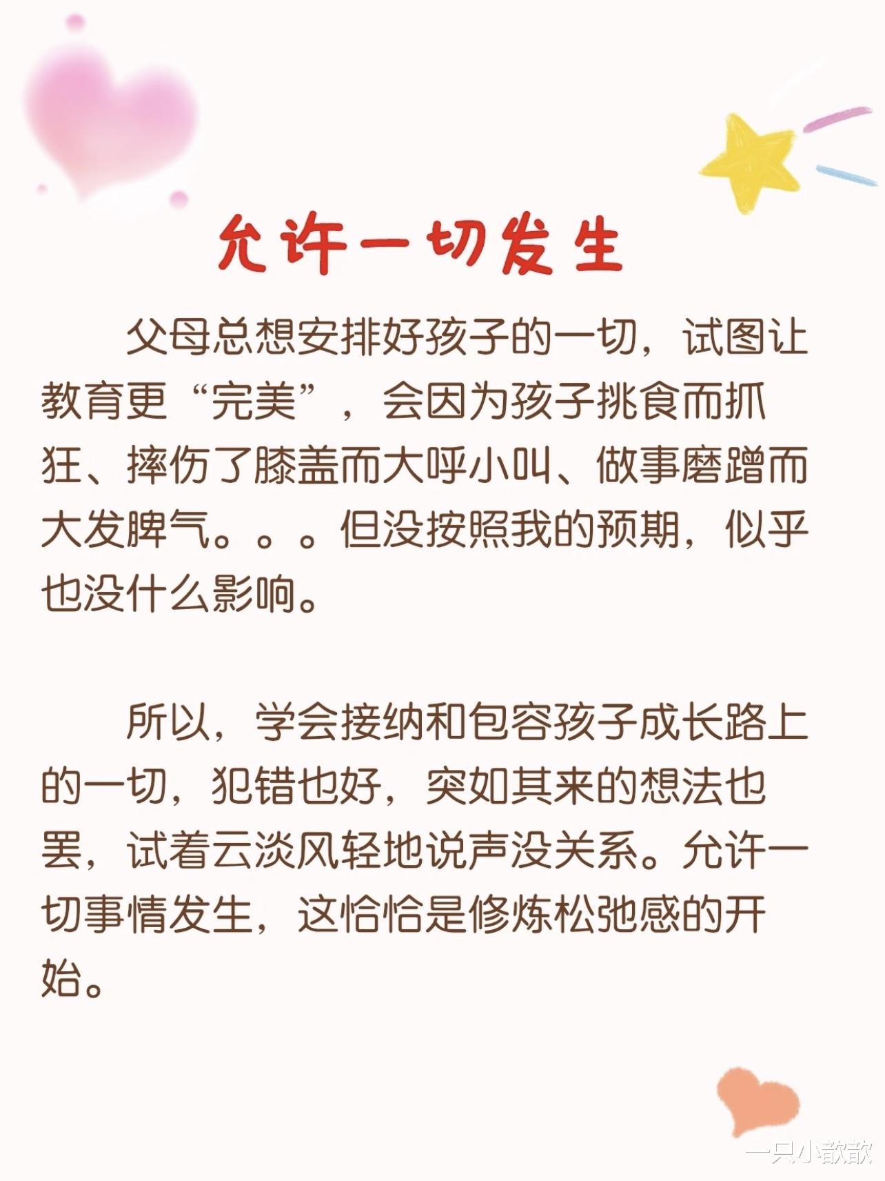 营造松弛感的家庭氛围,并不是一件难事。它不需要我们花费大量的金钱和精力,只需要我们用心去理解孩子,用爱去包容孩子,用智慧去引导孩子,让我们从现在开始,给孩子一个充满松弛感的家,让他们在爱的滋养下,绽放出属于自己的光芒,成为那个优秀又独一无二的自己!