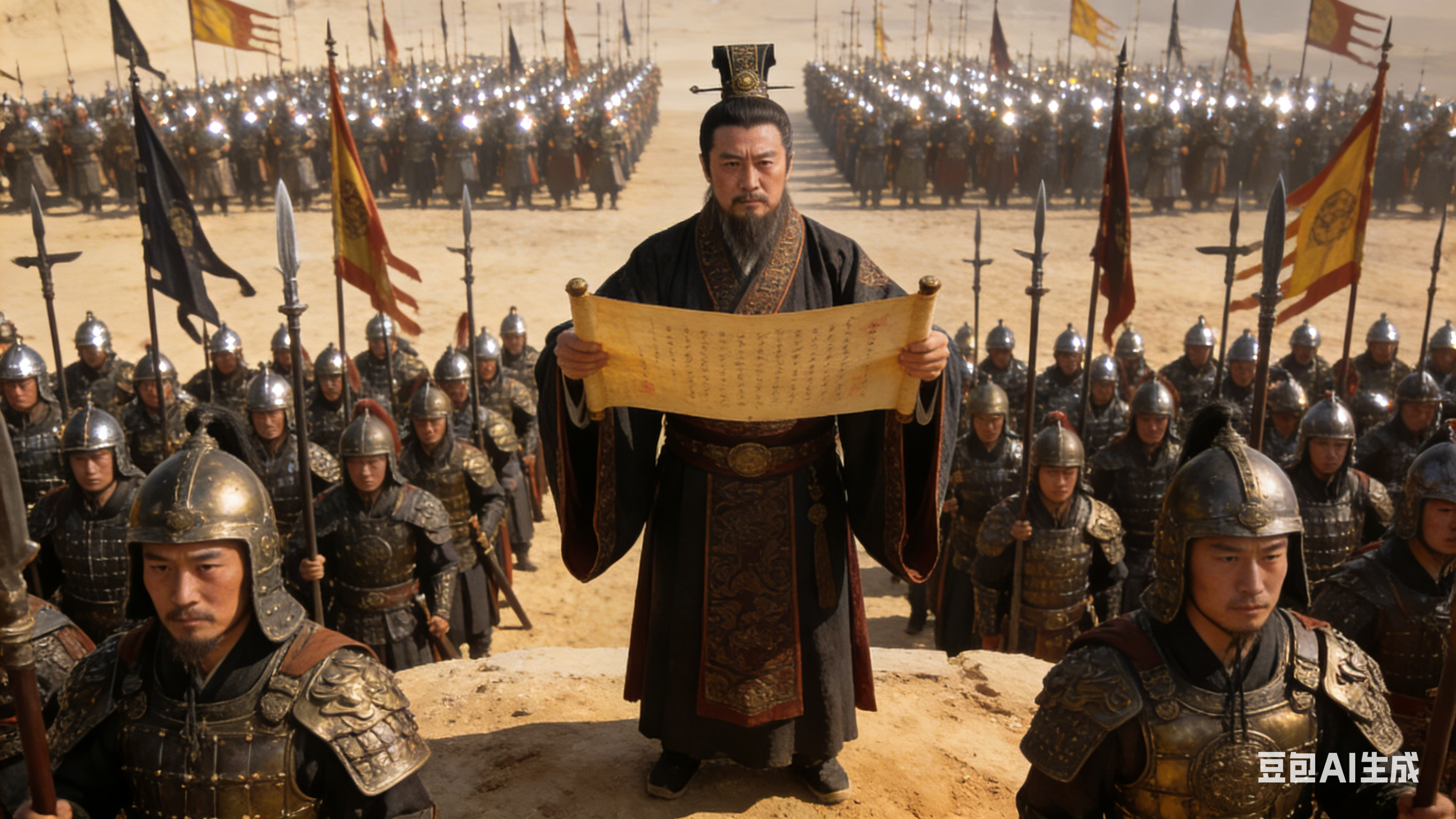 时任西域都护副校尉的陈汤,目睹家国受辱、威严受损,心中怒火中烧,毅然打破常规、孤注一掷——他假传圣旨,就地征调四万健儿,带着一腔热血与复仇之志,千里奔袭,穿越茫茫荒漠戈壁,直捣郅支单于的巢穴。