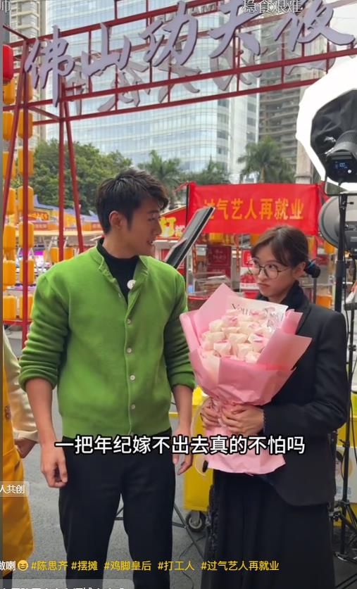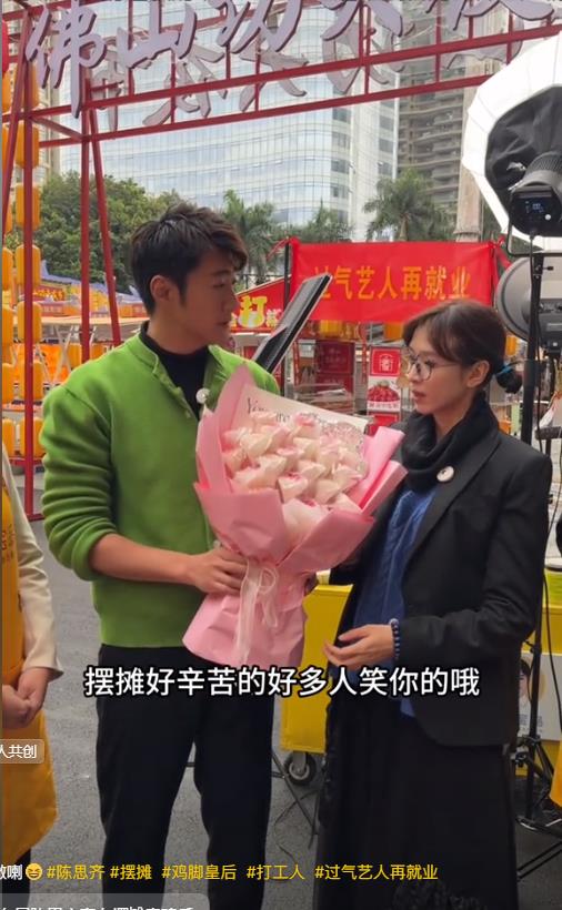 但是她去卖鸡爪的话,本身过气演员卖鸡爪,就是一个很好的噱头,而且在卖鸡爪的途中,她还遇见了很多可爱的粉丝。