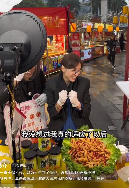 有了粉丝的鼓励,本来卖鸡爪还战战兢兢的她,马上鼓起了全部的勇气,因为她不想让支持她的粉丝们失望。