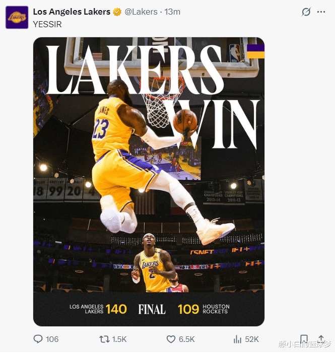 火箭轮休7人惨败湖人,这是意料之中的,因为火箭锁定西部前二,而且为了让太阳的首轮签再提前一个位次火箭不可能去赢湖人,所以湖人锁定西部第三。