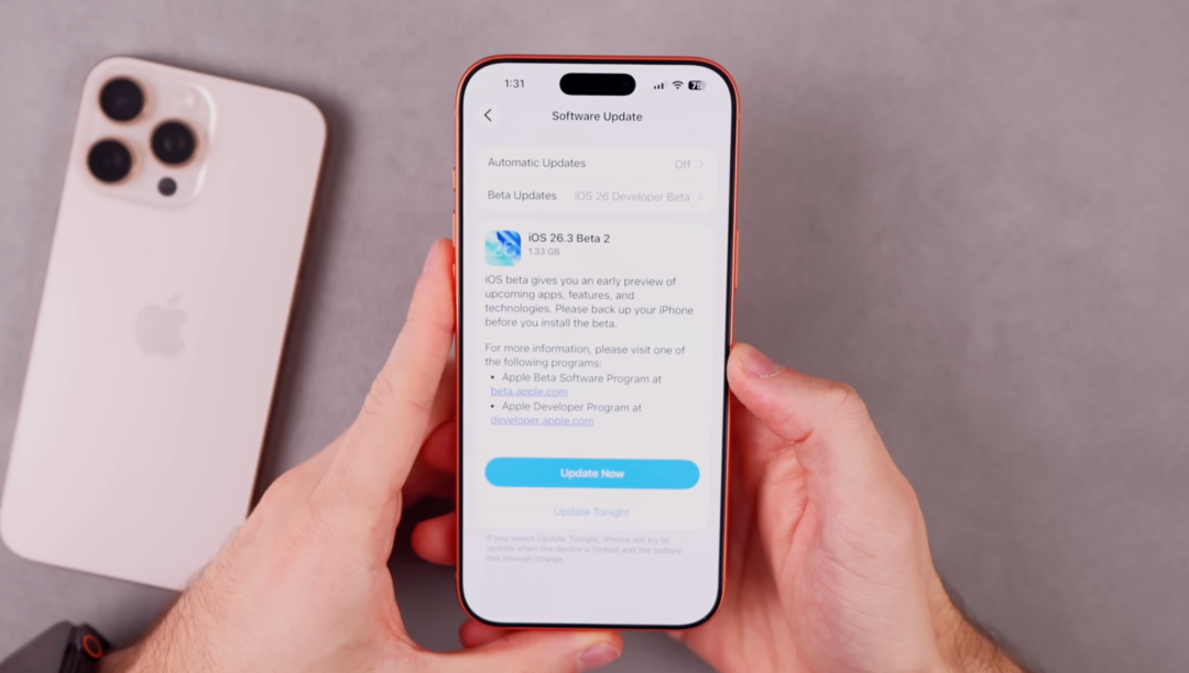 在今日凌晨,苹果推送了iOS 26.3 Beta 2 版本。