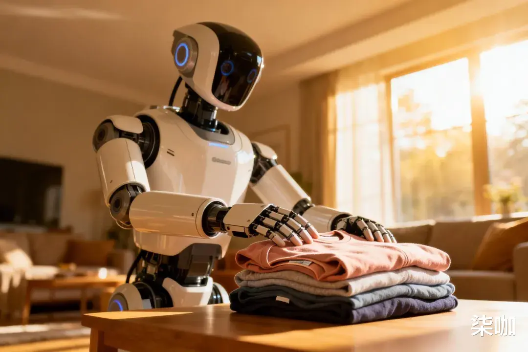 场景落地方面,从我能做些什么变成了你让我做些什么家庭服务这一块儿,叠衣服曾经是机器人最大的难题,以前面对随机的T恤毫无办法,现在它能实时判断布料褶皱情况,自己规划折叠动作不是事先设定好的程序, 而是实时做决定。
