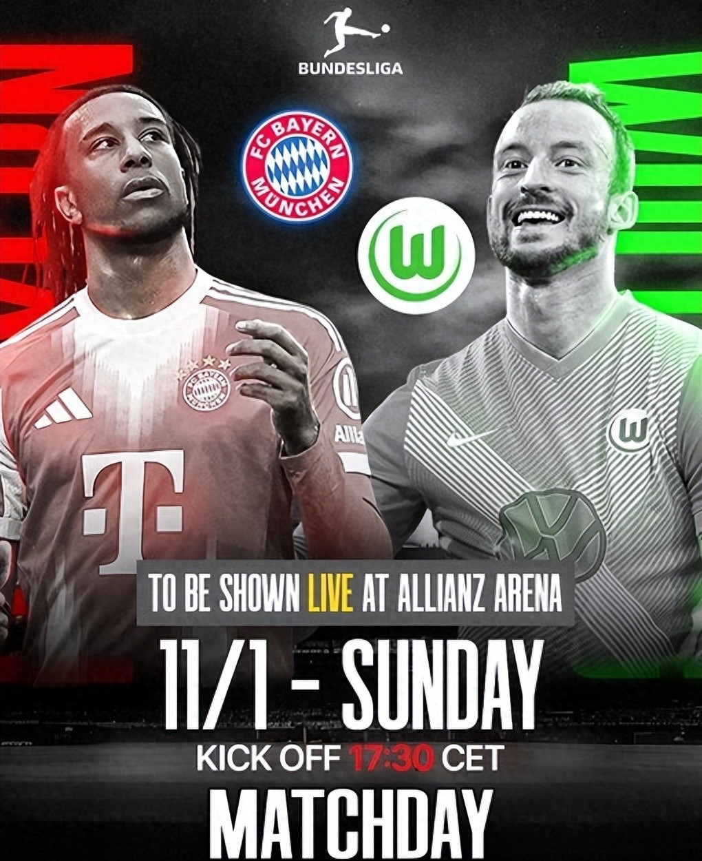 2026.01.12 00:30,拜仁慕尼黑 vs 沃尔夫斯堡