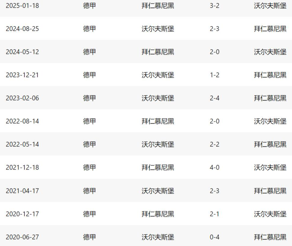 所以,从近12次德甲交锋11胜1平以及狼堡近12次作客安联球场交出的1平11负的成绩单来看,这样一场双方在2026年度的首场正式比赛,无疑还是不会有太大的胜负悬念。
