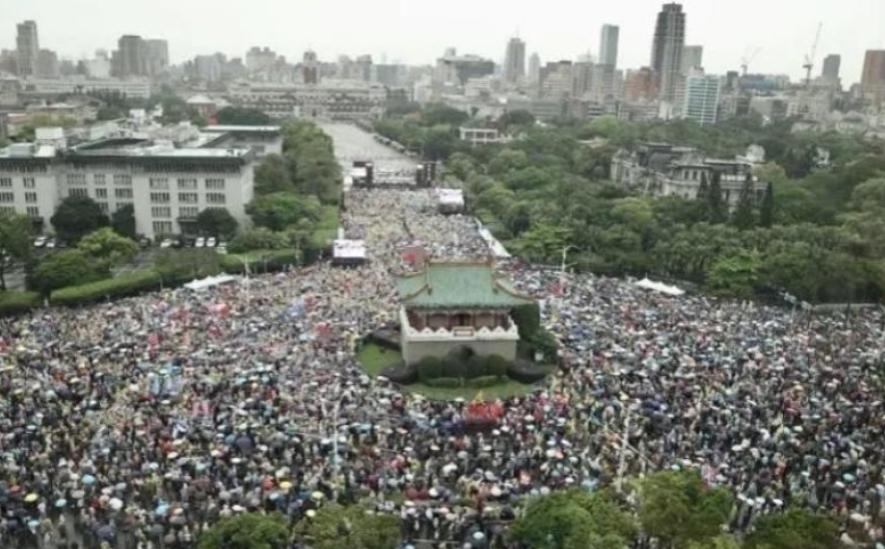 4月26日,国民党在凯道组织了反赖清德反绿抗议活动,国民党所有大咖全部到位,包括此前没有表态的韩国瑜,卢秀燕,侯友谊等。民主党黄国昌也携带支持者到场支持,就连部分绿营人士也加入反赖清德活动,活动上午就开始有人集结,到下午3点正式开始,超过25万人在现场冒雨支持。